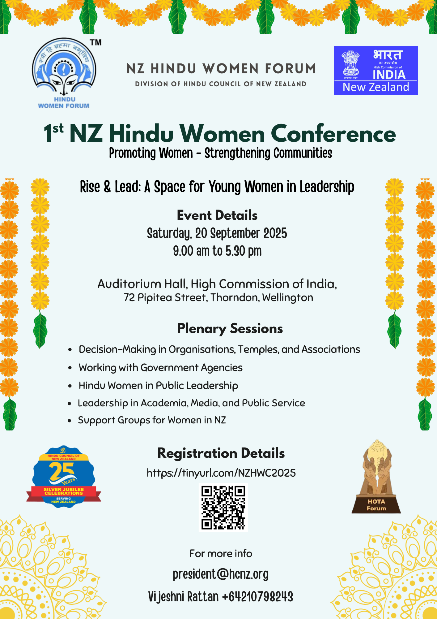 The 1st NZ Hindu Women Conference marks a defining moment for empowerment, leadership, and collaboration in the Hindu community and beyond. By bringing together voices from across the country, the event lays the foundation for strong, diverse, and resilient communities aligned with Aotearoa’s multicultural values. The conference represents much more than a day’s proceedings—it is a platform for shaping New Zealand’s future, led by women committed to service, inclusion, and excellence.